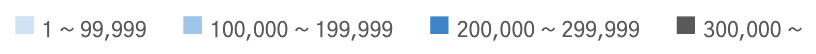 凡例: 照会期間内の利用者数、実行数の最小値と最大値を確認することができます。月間カレンダーのヒートマップに表示されるカラー4段階を確認することができます。