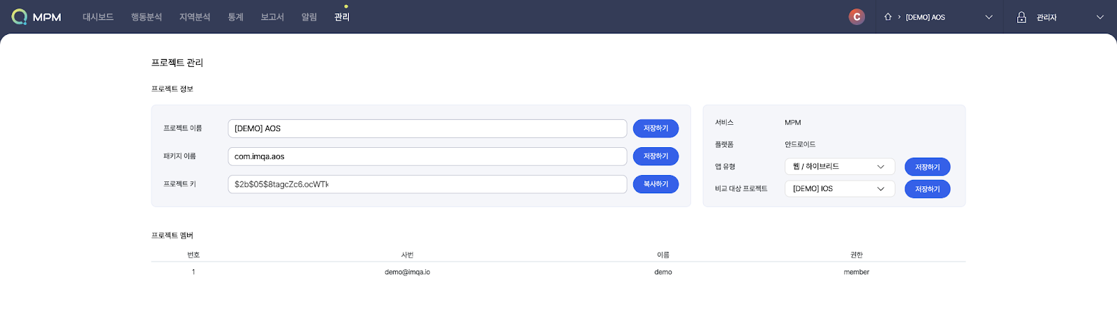 프로젝트 멤버 관리는 ‘[IMQA MPM 사용자 가이드 > 프로젝트 리스트 > 4. 프로젝트 관리 > 프로젝트 정보](https://docs.imqa.io/imqa-guide/wpm/projectlist#info)'를 참고하세요.